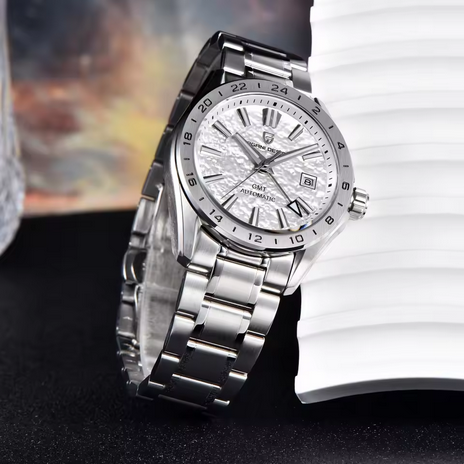 The PAGANI DESIGN 40MM Desert Texture GMT Automatic Watch is more than just a watch—it’s a symbol of precision, resilience, and style. Whether you’re navigating time zones, dressing for business, or exploring new destinations, this watch ensures sophistication, durability, and superior craftsmanship in every moment.