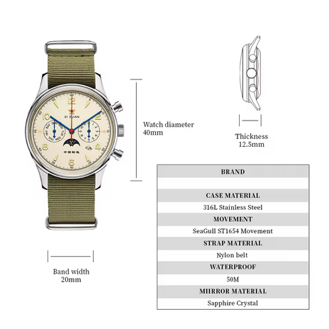 - Seagull ST1654 Automatic Movement – Self-winding and highly reliable for accurate timekeeping.